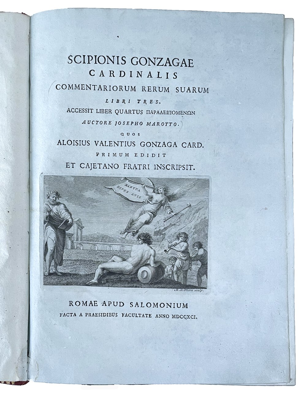 First edition of the autobiography of Cardinal Scipione Gonzaga, composed at the age of thirty-seven in 1579, then extended to the year 1587. For unknown reasons the Commentarii remained unpublished for over two centuries and was printed for the first time only in 1791.