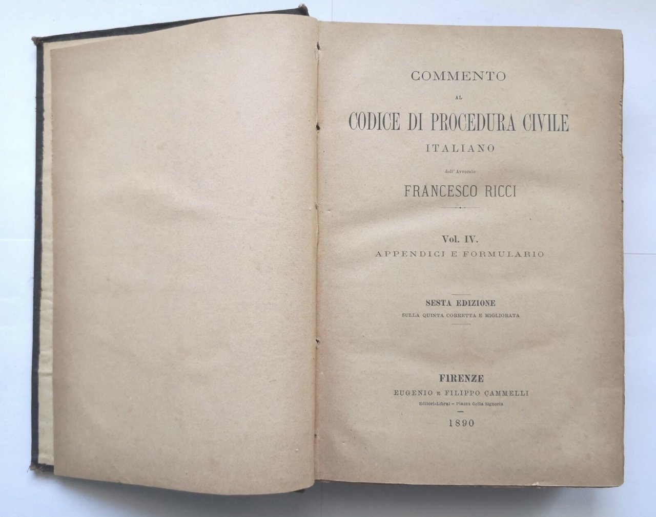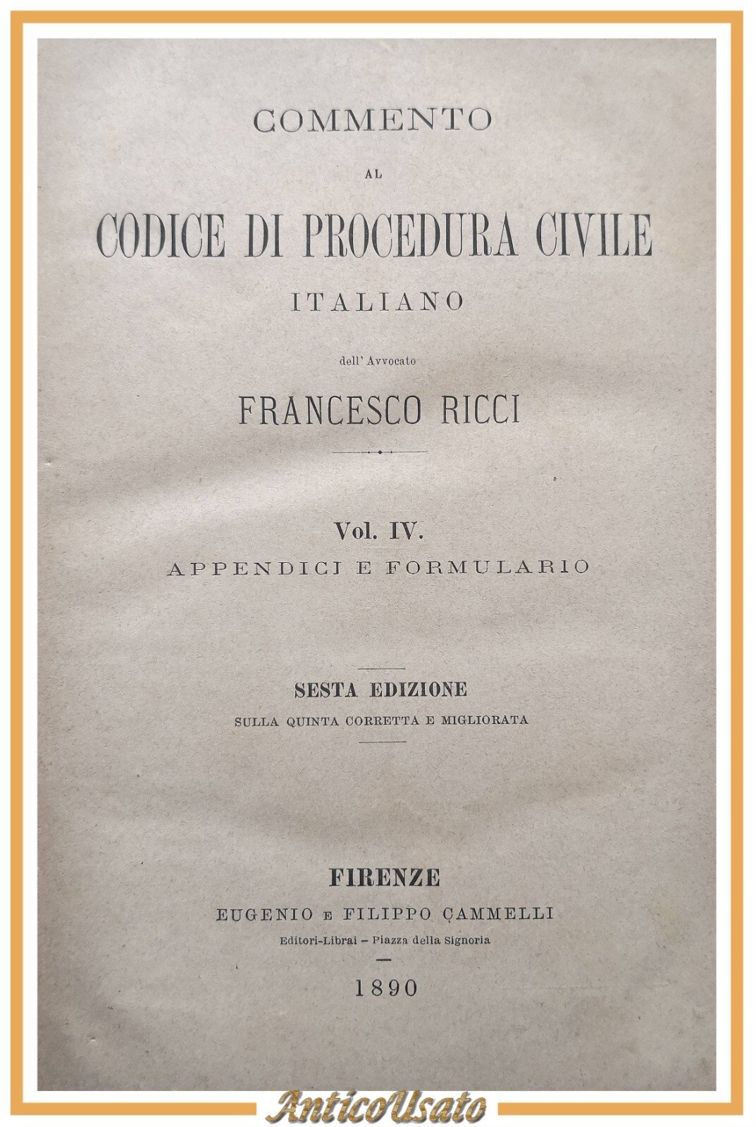COMMENTO AL CODICE DI PROCEDURA CIVILE ITALIANO Francesco Ricci volume IV 1890