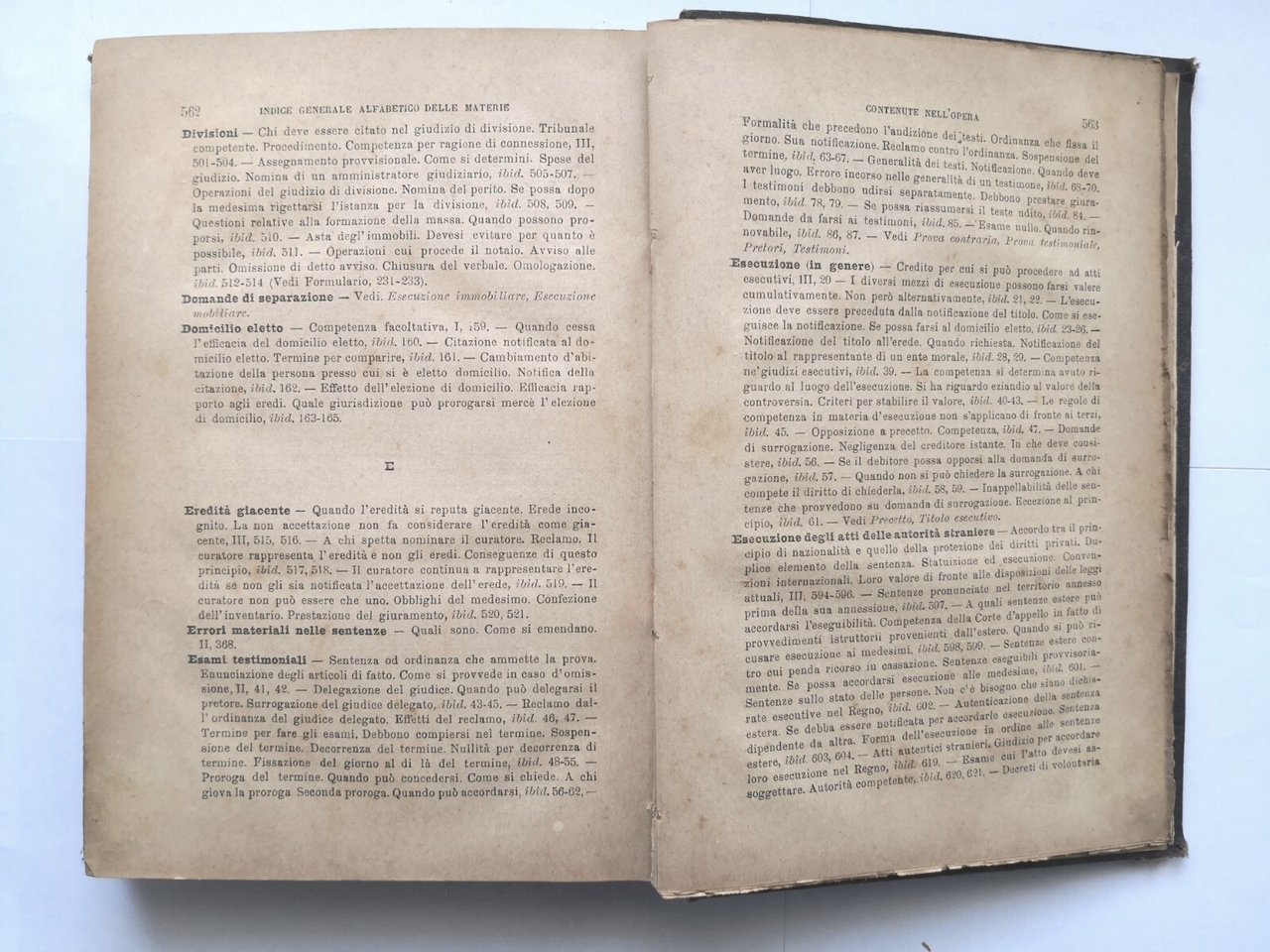 Firenze, Eugenio e Filippo Cammelli, 1890. 588 pagine. Copertina non editoriale in tutta tela. Stato di conservazione: buono (pagine ingiallite, copertina un po' sciupata, legatura appena allentata) Libro antico usato saggistica diritto legge giurisprudenza