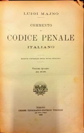 Quarta ristampa della terza edizione. Volume quarto. ( Art. 402 498 ). In 8° (cm 25,2 x 16,7), pp. 383. Leg. mezza tela con angoli bordeaux, piatti cart. rossi. Segni di consunzione ai margini e alle cuffie. Mancanza all’angolo sup. del piatto post. Segni d’abrasione. Taglio sup. impolverato. Tagli e pagine sup. Gore. Segni e sottolineature a matita e a colori. Buone condizioni.