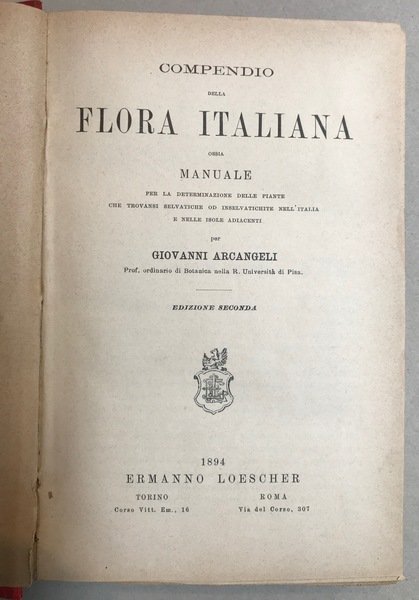 Compendio della flora italiana ossia manuale per la determinazione delle piante che trovansi selvatiche o inselvatiche nell'Italia e nelle isole adiacenti. seconda edizione