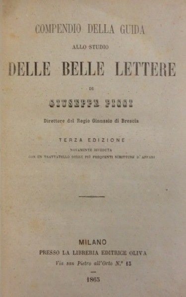 Compendio della guida allo studio delle belle lettere.