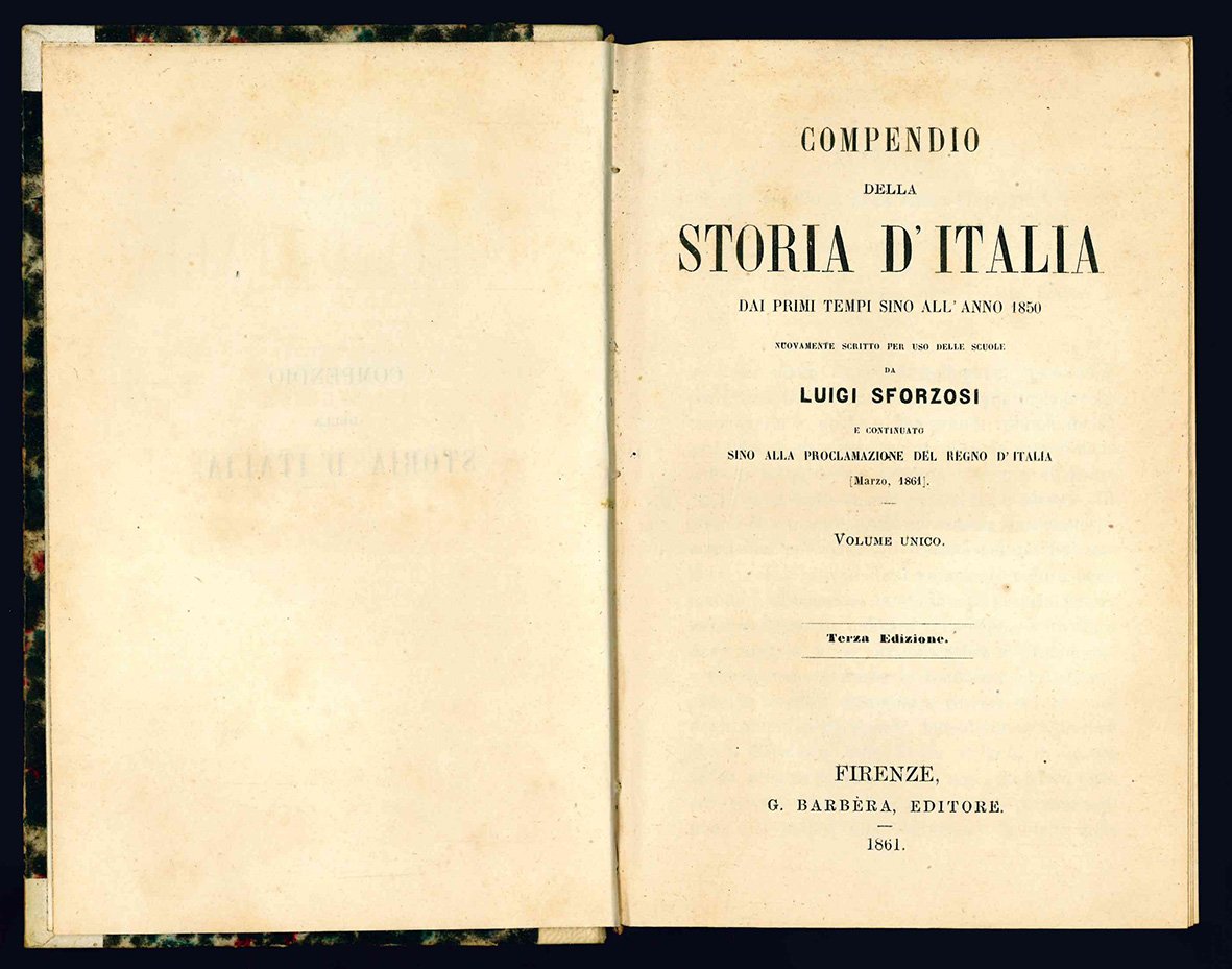 Compendio della storia d'Italia dai primi tempi sino all'anno 1850. Nuovamente scritto per uso delle scuole da Luigi Sforzosi e continuato sino alla proclamazione del Regno d'Italia. Volume unico. Terza edizione.