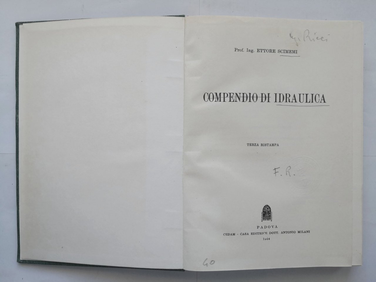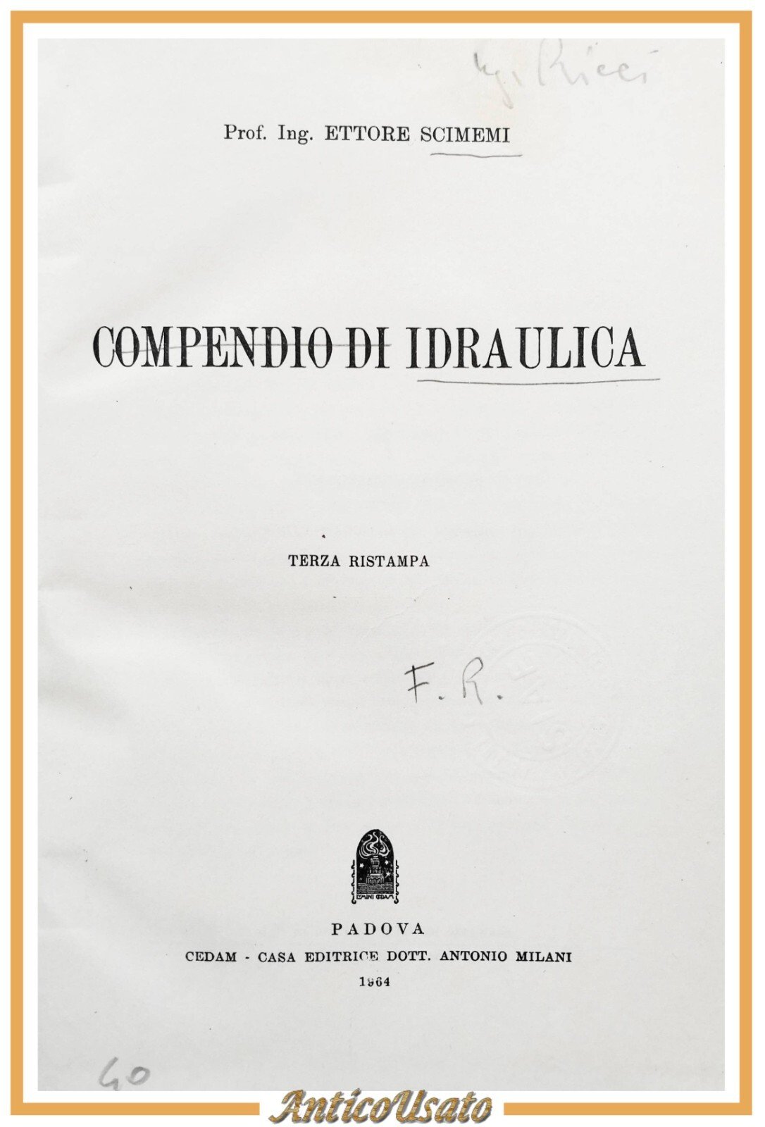 COMPENDIO DI IDRAULICA di Ettore Scimemi 1964 CEDAM libro manuale