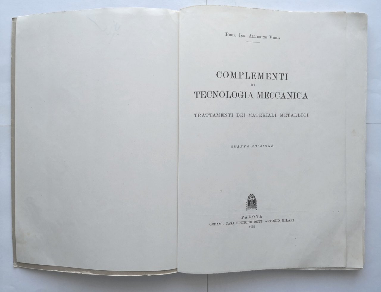 COMPLEMENTI DI TECNOLOGIA MECCANICA Almerino Viola 1951 CEDAM libro materiali