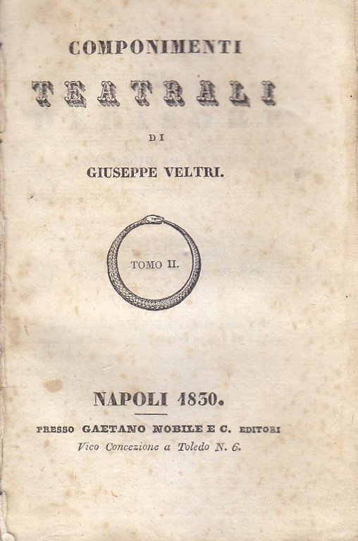 COMPONIMENTI TEATRALI di Giuseppe Veltri TOMO 2 1830 Gaetano Nobile libro antico