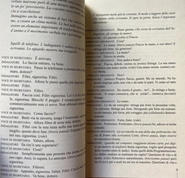anatre arriva ASPIRANTE DIPENDENTE basta bella bere bisogno breve pausa buio calma capito casa cavolo cazzo CELESTE Claudio cliente colpa comincia comunista conto costa cucina dormire dottore fermo figli finito forte fuma GENERALE GIANNI giorno GIULIO GLENDA guarda INDAGATORE l'azienda lavoro leggerla letto LUCIA male mangiare mano MARCO MARIO meglio mese morendo morto oggetti padre passi paura penso perdere piacere pieno posto prova respirare RESPONSABILE resto ricordo ride Rumore di passi sapere SEGRETARIA serio sicuro sigarette Stai stronzo stupido telefono testa tono tossisce tranquillo treno vecchio vedere vero verso vivere volta