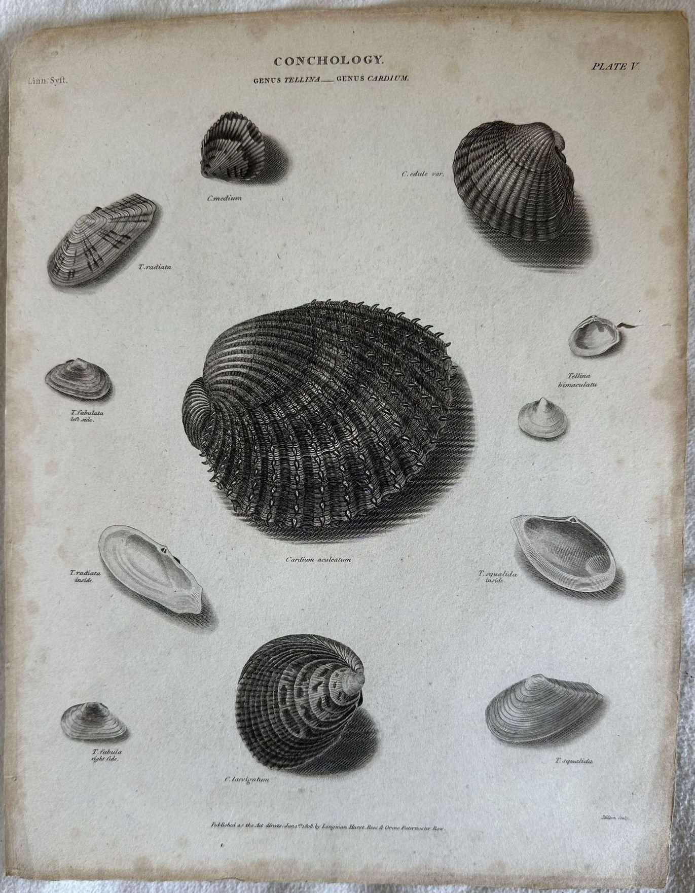 CONCHOLOGY<BR><BR>GENUS TELLINA - GENUS CARDIUM C. medium - C. edule - Cardium aculeatum - C. laevigatum - T. radiata - T. fabulata - T. fabula - Tellina bimaculatu - T. squalida PUBLISHED AS THE ACT DIRECTS JAN 1 1808 BY LONGMAN AND REES
