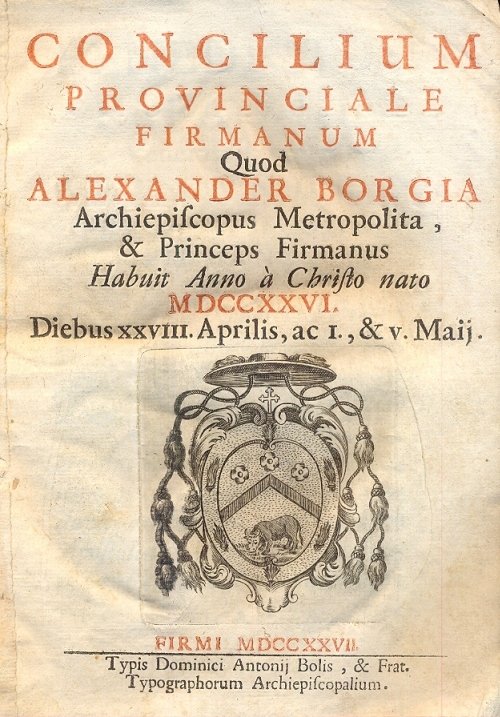 Concilium Provinciale Firmanum. Habuit anno à Christo nato 1726. Diebus XXVIII Aprilis, ac I., & v. Maij.