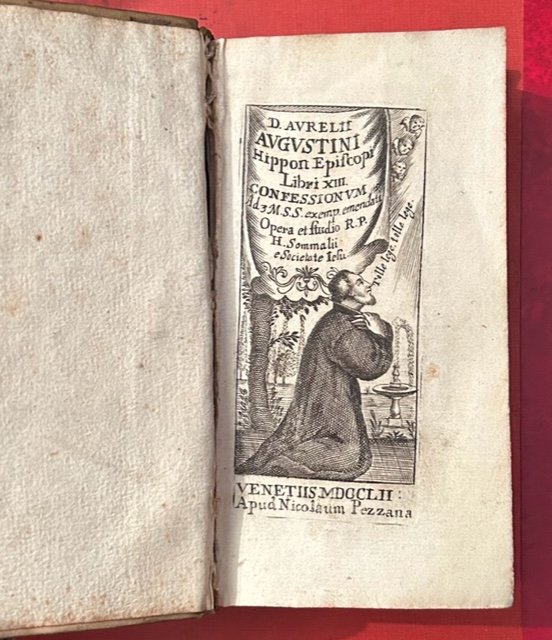 In-16° (125 x 63 mm.), pp. 388, (20), bel frontespizio allegorico raffigurante il Santo in preghiera inciso in rame, legatura coeva in piena pergamena rigida, tagli rossi.
