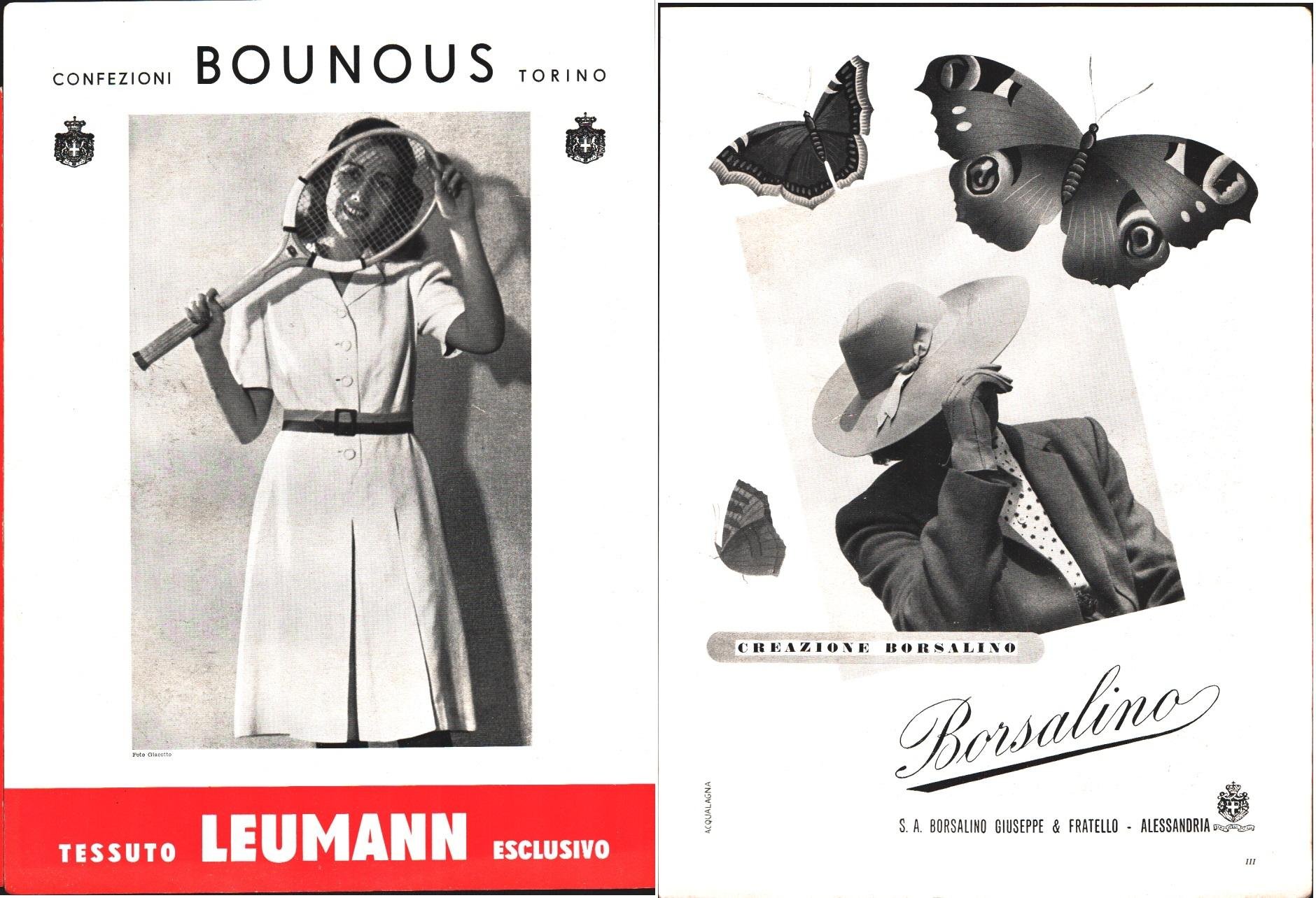 Confezioni Bounous Torino / Borsalino. Pubblicità 1942