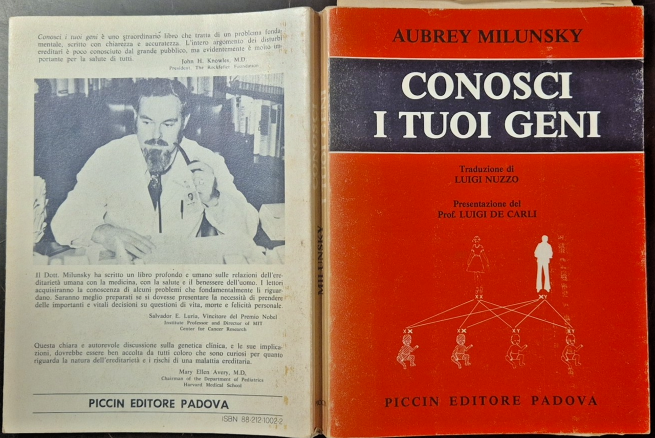 CONOSCI I TUOI GENI di Aubrey Milunsky 1982 Piccin Libro Manuale genetica