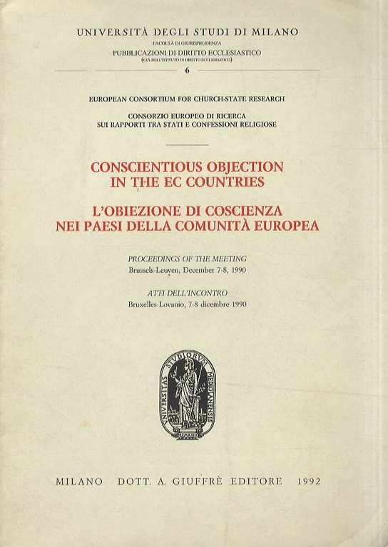 CONSCIENTIOUS objection in the EC Countries. L'obiezione nei Paesi della Comunità Europea. Atti dell'Incontro. Bruxelles-Lovanio, 7-8 dicembre 1990.