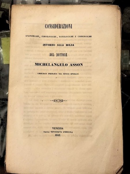 Considerazioni anatomiche, fisiologiche, patologiche e chirurgiche intorno alla milza.