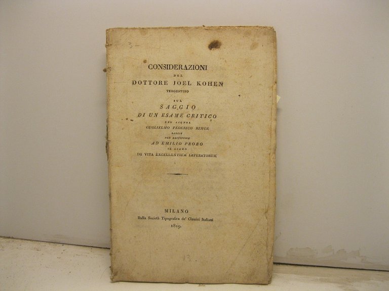 Considerazioni del dottore Joel Kohen tergestino sul saggio di un esame critico del signor Guglielmo Federico Rinck badese per restituire ad Emilio Probo il libro De vita excellentium imperatorum