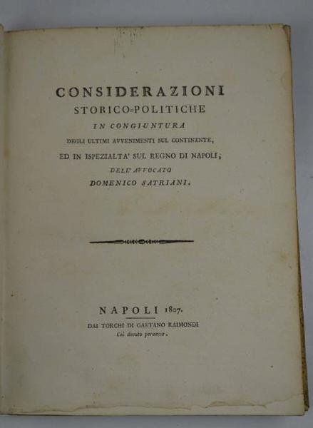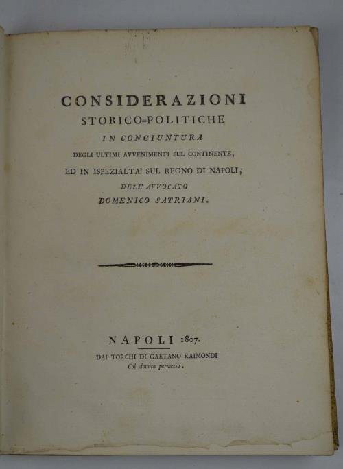 Considerazioni storico-politiche in congiuntura degli ultimi avvenimenti sul continente, ed in ispezialità sul Regno di Napoli…