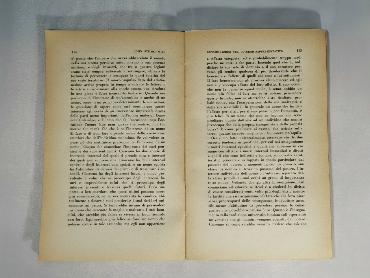 CONSIDERAZIONI SUL GOVERNO RAPPRESENTATIVO di John Stuart Mill 1946 Bompiani