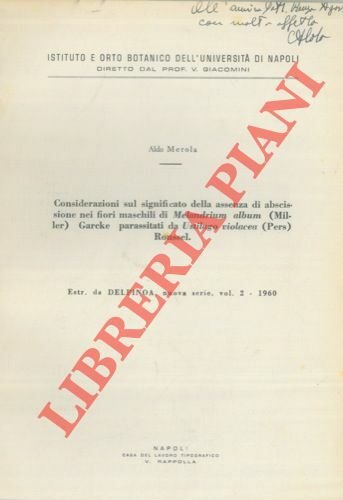 Considerazioni sul significato della assenza di abscissione nei fiori maschili di Melandrium album ( Miller) Garcke parassitati da Ustilago violacea (Pers) Roussel.