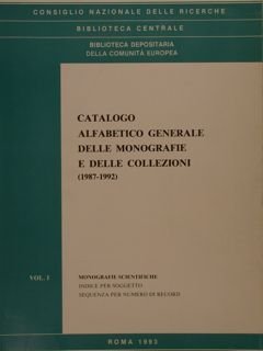 Consiglio Nazionale delle Ricerche, Biblioteca Centrale, Biblioteca depositaria della Comunità Europea. CATALOGO ALFABETICO GENERALE DELLE MONOGRAFIE E DELLE COLLEZIONI (1987-1992).