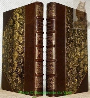 210x130mm, XII - 314 + 358 pages, reliure demi-chagrin à coins avec titre, tomaison, date, ornementations et encadrements dorés au dos à faux-nerfs. Plats papier marbré avec 3 filets dorés. Tranche supérieure dorée. Belle reliure. Très bel exemplaire.