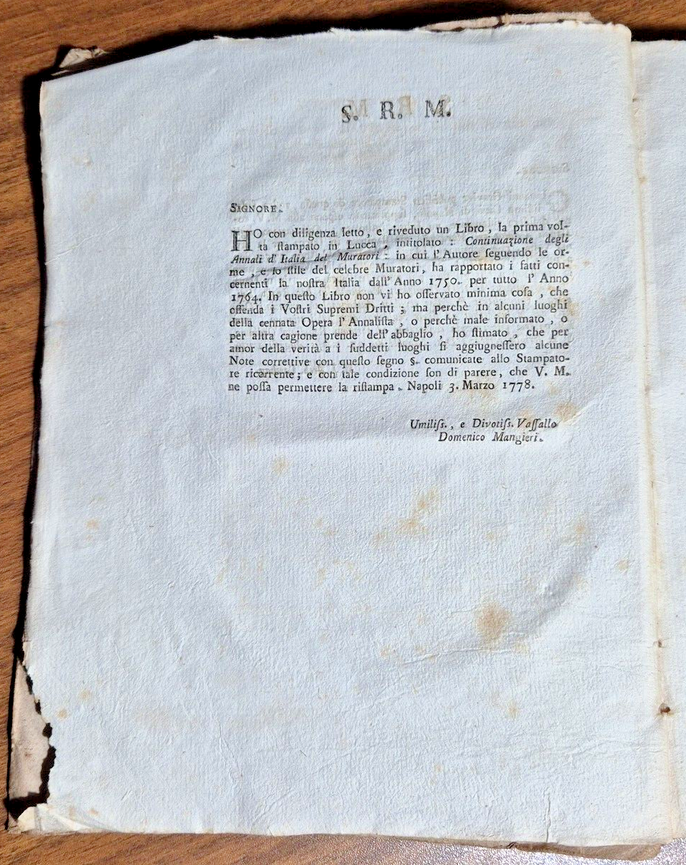 Napoli, nella stamperia di Giovanni Gravier, 1778 (seconda edizione sulla prima di Lucca) .