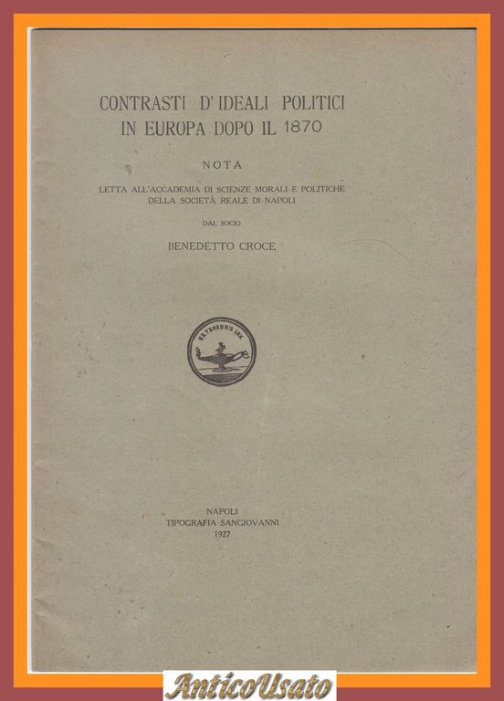CONTRASTI D’IDEALI POLITICI IN EUROPA DOPO IL 1870 di Benedetto Croce 1927 Libro