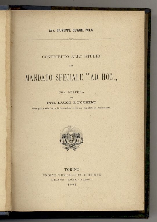 Contributo allo studio del mandato speciale "ad hoc". Con lettera del prof. Luigi Lucchini.