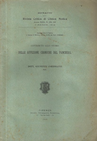 Fascicolo spillato, piatti con leggeri punti di imbrunitura, testo completamente fruibile, pagine imbrunite, con note a piè di pagina, estratto dalla Rivista Critica di Clinica Medica, Anno XII, n. 19-20 Numero Pagine 35