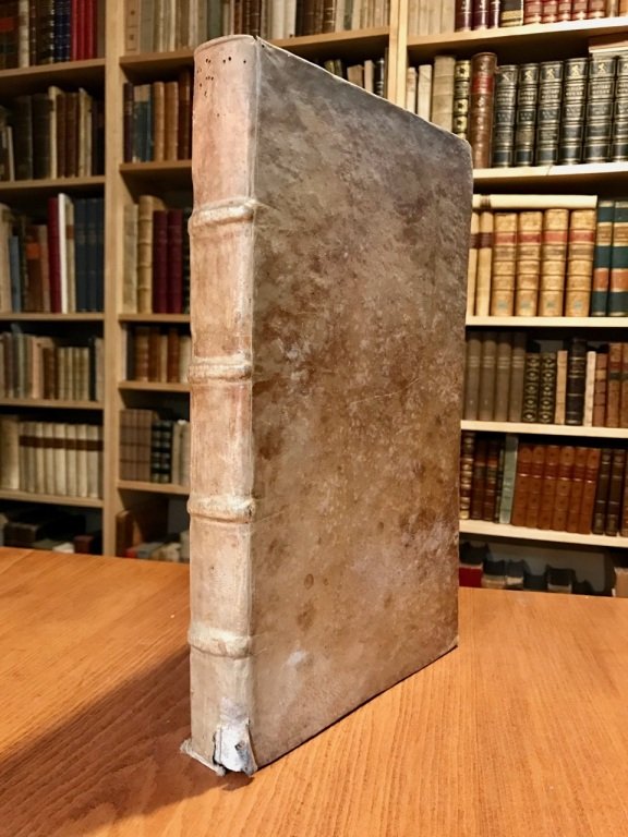 2 volumi in 1 in-folio (cm. 33,6), legatura coeva in piena pergamena rigida con nervi (piccolo strappo al piede del dorso), titolo anticamente manoscritto al taglio inferiore; pp. [16] 296 [48], [8] 156 [36] con testo su due colonne, primo frontespizio in rosso e nero, titolo all'occhietto che contempla entrambe le opere; fioriture sparse. La prima opera raccoglie controversie nel campo di diritto civile di Napoli; nella seconda una serie di interpretazioni del diritto di seconde nozze. Buon esemplare.