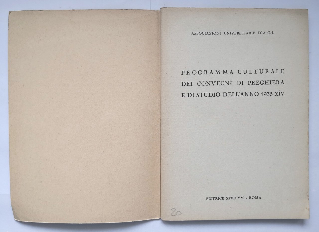 Programma Culturale dei CONVEGNI di preghiera e di studio dell'anno 1936 - XIV. Associazioni Universitarie di Azione Cattolica.