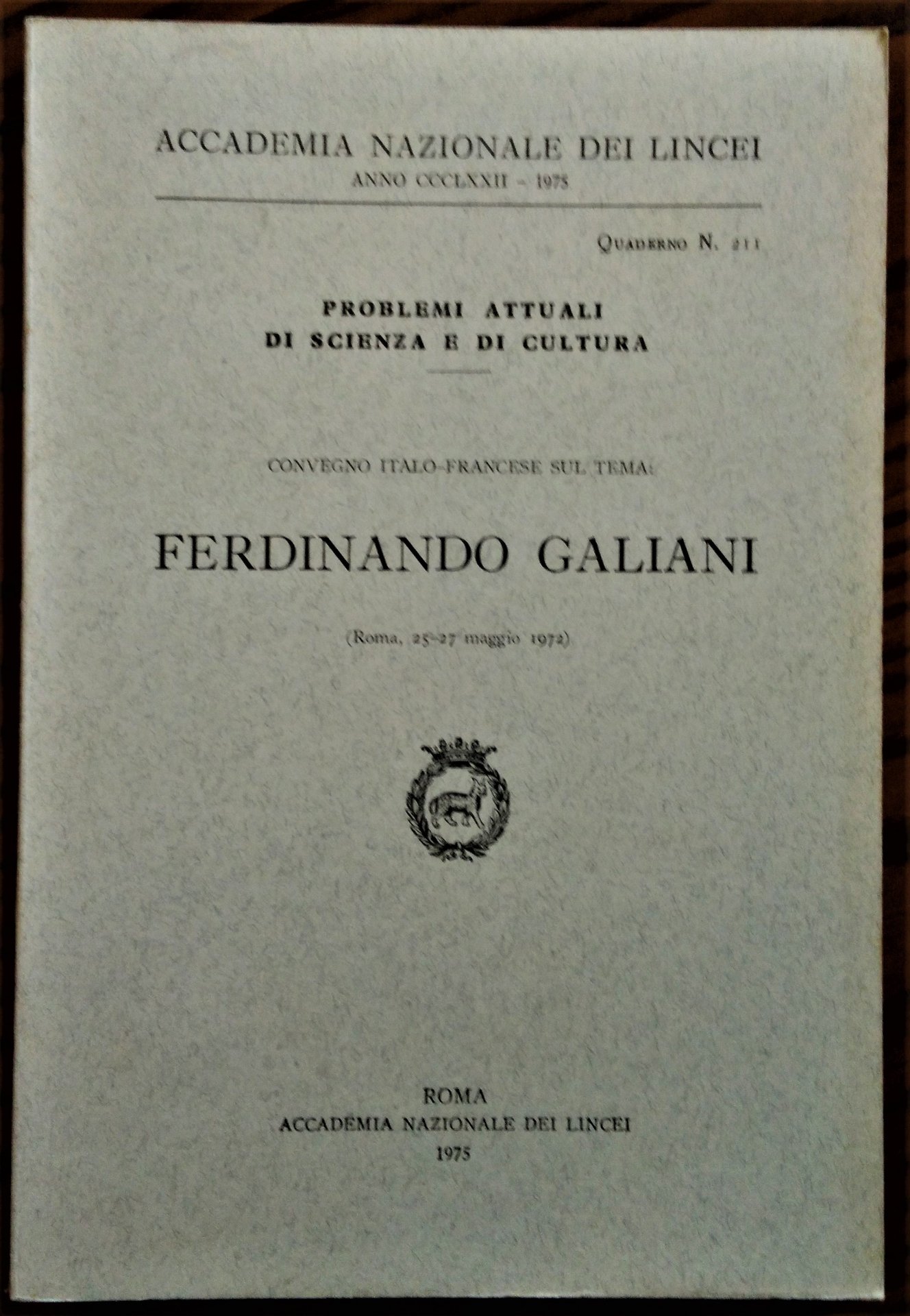 Convegno italo-francese sul tema: Ferdinando Galiani. (Roma, 25-27 maggio 1972).