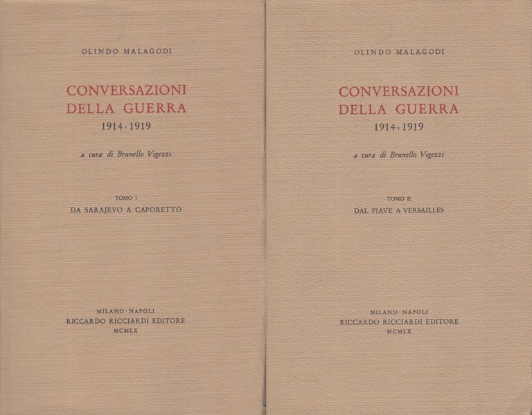 Conversazioni della guerra 1914-1919. Tomo I Da Sarajevo a Caporetto, Tomo II dal Piave a Versailles