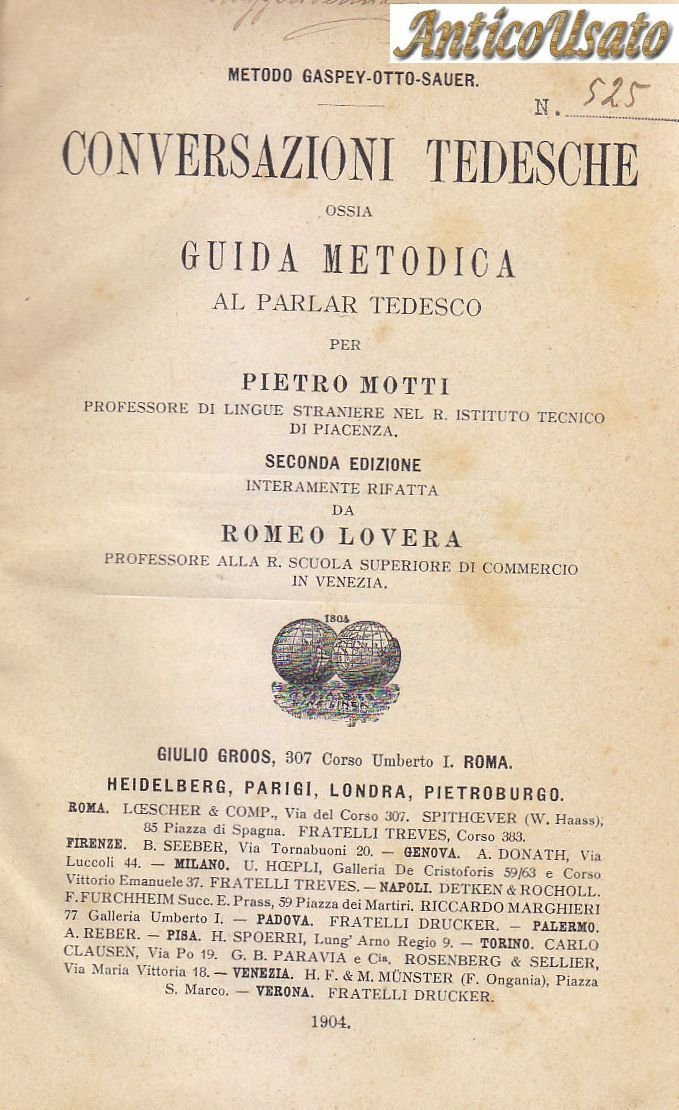 CONVERSAZIONI TEDESCHE GUIDA METODICA AL PARLAR TEDESCO di Pietro Motti Giulio Groos Editore 1904.