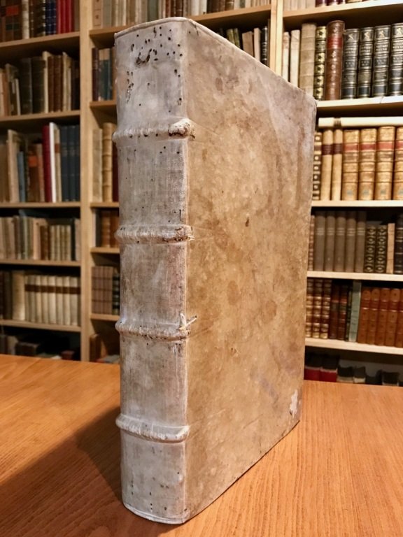 In-folio (cm. 32,4), legatura coeva in piena pergamena rigida con nervi (forellini), titolo manoscritto al taglio inferiore; pp. [20] 635 [49] con ritratto a piena pagina in rame del giureconsulto napoletano, frontespizio in rosso e nero con marca silografica, testo su due colonne; lievi bruniture e sporadiche fioriture. Prima edizione della raccolta di allegazioni che riunisce il meglio dell'attività forense del Capone (filocuriale e sostenitore di un'interpretazione estensiva delle prerogative giurisdizionali ecclesiastiche); costituisce una fonte di notevole interesse sulla vita giuridica napoletana intorno alla metà del secolo. Cfr. Sapori I, 509. Esemplare molto buono.