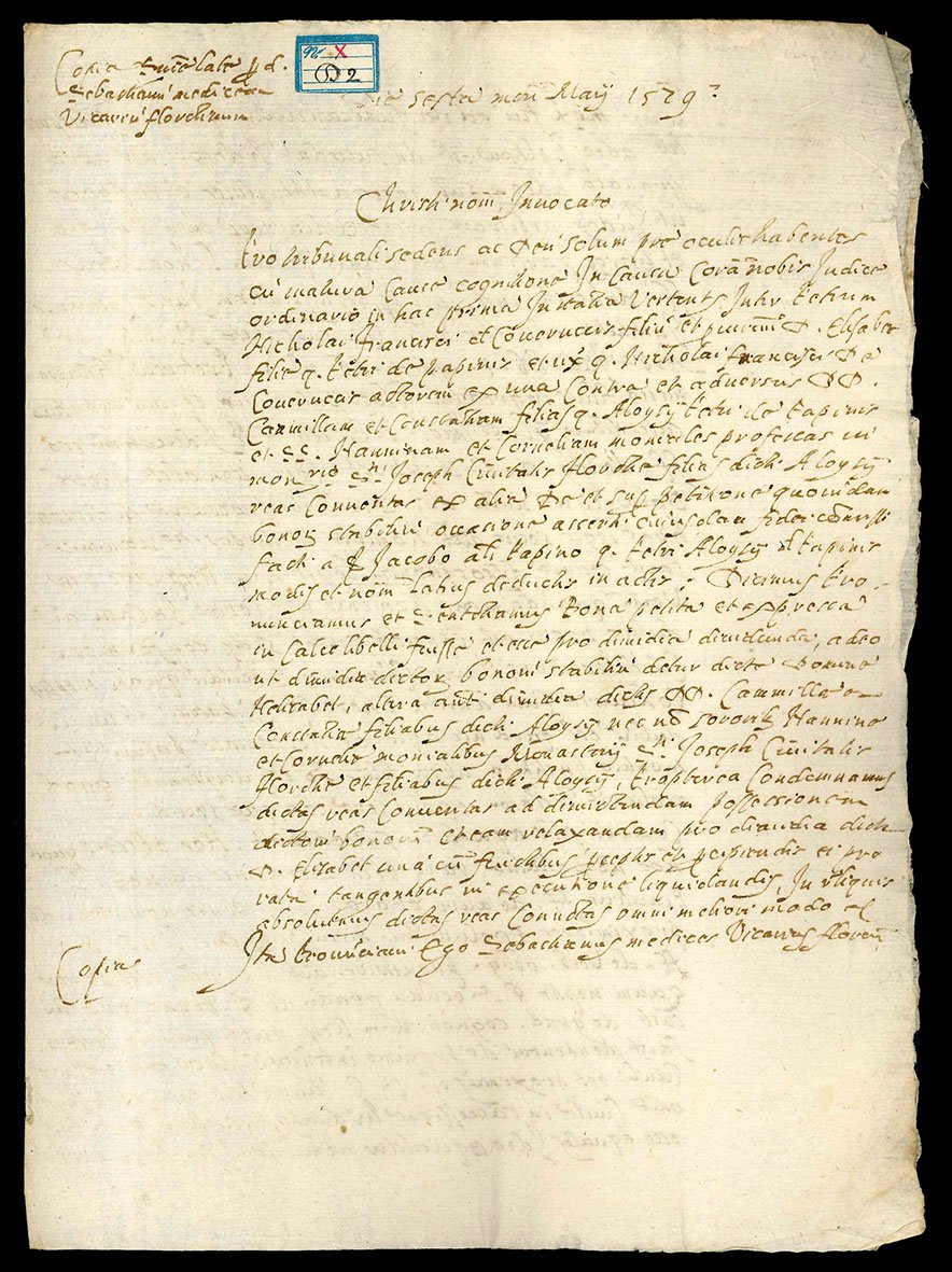 Copia di un documento legale in latino. 6 maggio 1529.