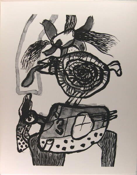 1970. Plaquette grand in/4 (31 x 25 cm) broché, couverture lithographiée en couleurs, 1 lithographie couleurs double feuillet, autres planches en noir, 14 feuillets non paginés. Exemplaire numéroté (449/750), avec une lithographie originale. Exemplaire frais en excellent état. Guillaume Corneille van Beverloo est né en 1922 de parents néerlandais à Liège (BE), où il passe de nombreuses années de son enfance. En 1943, après un court passage à l’Académie des beaux-arts d’Amsterdam où il trouve l’enseignement trop académique, il abandonne le cursus classique pour expérimenter et s’exprimer librement. La guerre éclate malheureusement et projette son ombre néfaste sur le Monde. Contre toute probabilité et malgré l’enfer de la guerre, Corneille continue de peindre. À la libération, il décide d’oublier cette période terrible et embrasse la liberté à pleines mains. En 1947, il est invité à exposer ses peintures à Budapest. Il y découvre les œuvres de P.Klee et rencontre J. Doucet. De retour aux Pays-bas, il crée en 1948 avec K. Appel et Constant, l’Experimentele Groep Amsterdam et Reflex. Le 8 novembre de la même année, en opposition au surréalisme d’A. Breton trop théorisant, Corneille avec ses deux compagnons hollandais, les artistes belges C. Dotremont et J. Noiret ainsi que l’artiste danois A. Jorn, fonde à Paris le groupe COBRA.