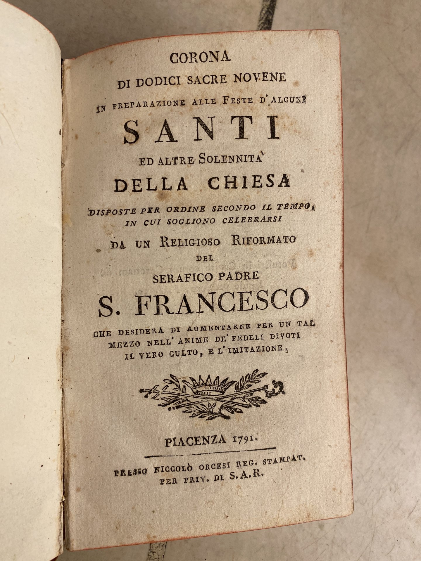 Corona di dodici sacre novene in preparazione alle feste d'alcuni santi ed altre solennità della chiesa disposte per ordine secondo il tempo in cui sogliono celebrarsi da un religioso riformato del serafico padre S. Francesco
