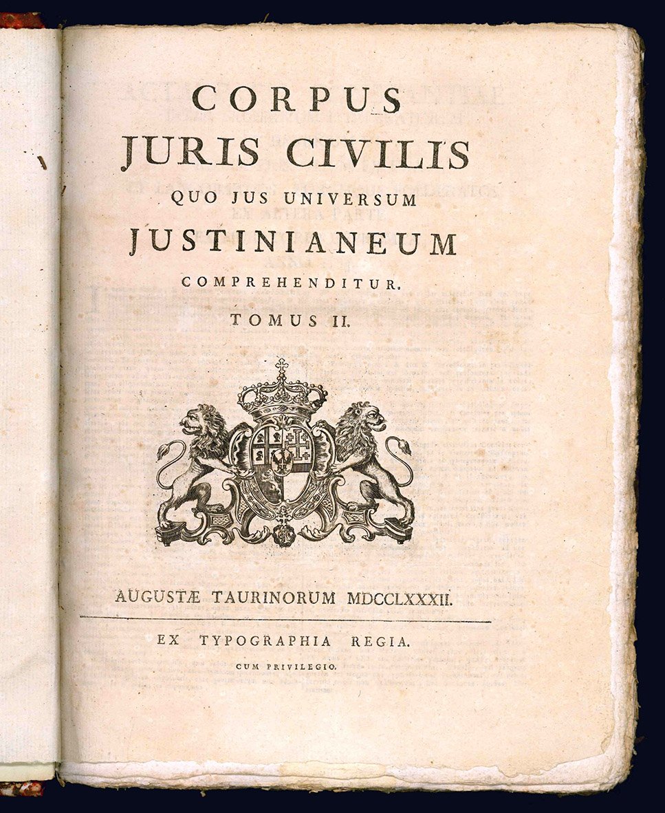 Corpus Juris Civilis quo jus universum Justinianeum comprehenditur. Tomus I (-II).