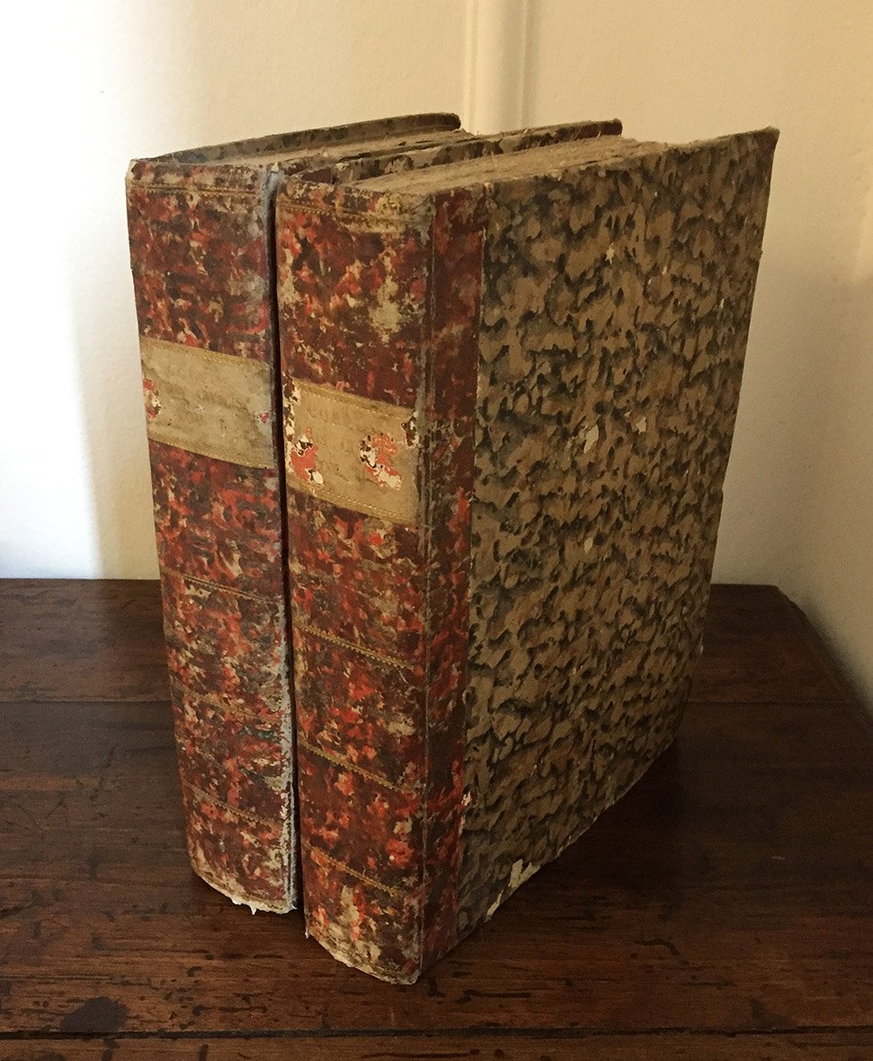Occhietto, stemma calcografico dei Savoia al frontespizio, iniziali e fregi xilografici. Lievi fioriture e leggeri aloni, restauri al margine esterno delle cc. Ooo3-Ppp1 del primo volume, che tuttavia non interessano il testo. Lievi abrasioni ai piatti e al dorso. Firma di appartenenza al risguardo anteriore di entrambi i volumi. Bella copia in barbe.