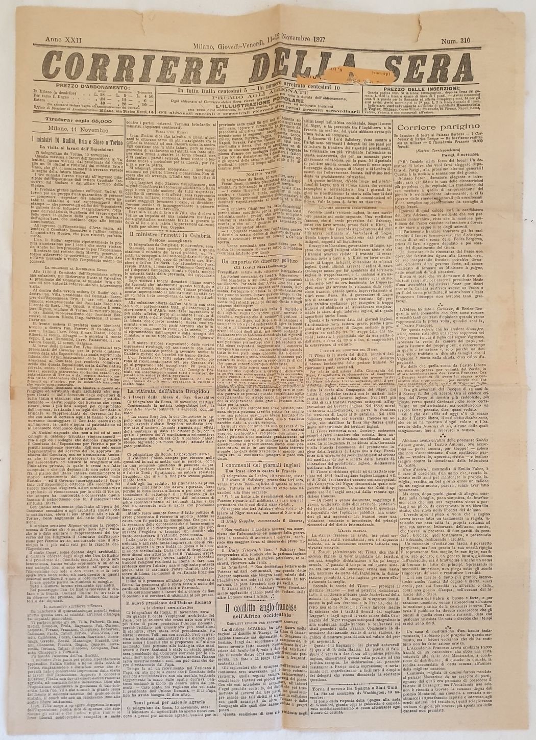 CORRIERE DELLA SERA MILANO GIOVEDI VENERDI 11 12 NOVEMBRE 1897