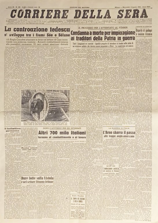Corriere della Sera N. 190 - 1944 Contrazione tedesca tra i fiumi See e Selune