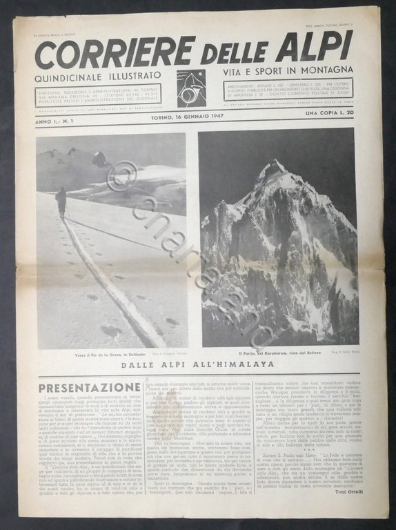 Corriere delle Alpi - Anno I - N. 1 - 1947 - Dalle Alpi all' Himalaya