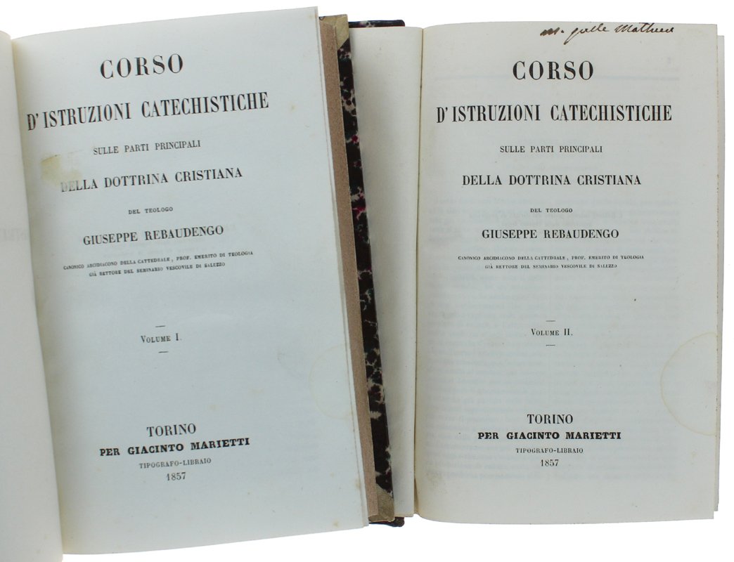 CORSO D'ISTRUZIONI CATECHISTICHE SULLE PARTI PRINCIPALI DELLA DOTTRINA CRISTIANA. Volume 1 + Volume 2.