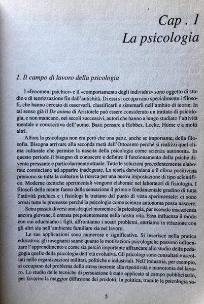 Soggetti: Psicologia, Manuali, Orientamento, Saggi, Mente, Fenomeni psichici, Storia, Filosofia, Scuole di pensiero, Scienza, Metodo, Percezione, Attenzione, Sensibilità, Età evolutiva, Infanzia, Memoria, Apprendimento, Imprinting, Riflessi condizionati, Psicopatologia, Sigmund Freud, Jung, Labirinti, Prove, Errori, Intelligenza, Linguaggio, Concetto, Conoscenza, Attività onirica, Sogni, Istinto, Emozioni, Mondo emozionale, Pulsioni, Agire, Conoscenza, Sentimenti, Vita emotiva, Tabù, Aggressività, Amore, Società primitiva, Personalità, Sdoppiamento, Comportamento, Sessualità, Teorie, Carattere, Educazione, Scuola francese, Inconscio, Gestalt, Frank Brentano, Jean Piaget, Ivan Pavlov, Ernst Weber, Gustav Fechner, Wilhelm Wundt, William James, Psicoanalisi, Analisi, Groninga, Otto personaggi-tipo, Tipologia umorale, Gruppi, Dinamiche, Status, Riassunti, Didattica, Studio, Libri fuori catalogo, Lezioni, Corsi, Psichiatria, Bignami, Psychology, Manuals, Orientation, Essays, Mind, Psychic phenomena, History, Philosophy, Schools of thought, Science, Method, Perception, Attention, Sensitivity, Developmental age, Childhood, Memory, Learning, Conditional reflexes, Psychopathology, Labyrinths, Trials, Errors, Intelligence, Language, Concept, Knowledge, Dreamlike Activity, Dreams, Instinct, Emotions, Emotional World, Pulses, Acting, Knowledge, Feelings, Emotional Life, Taboo, Aggression, Love, Primitive Society, Personality, Splitting, Behavior, Sexuality, Theories, Character, Education, French school, Unconscious, Psychoanalysis, Analysis, Eight typical characters, Type of humour, Groups, Dynamics, Summaries, Didactics, Study, Books out of print, Lessons, Courses, Psychiatry