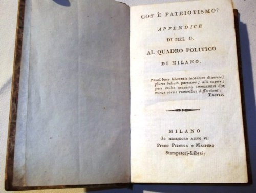 Cos'è patriottismo? UNITO A: Apologia al quadro politico di Milano di Mel.[chiorre] G.[ioja]. Appendice di Mel.[chiorre] G.[ioja]. al quadro politico di Milano.