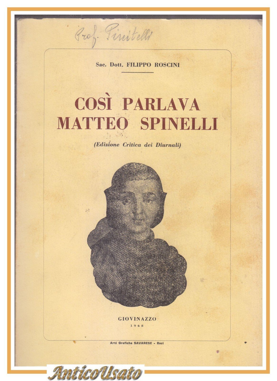 COSI PARLAVA MATTEO SPINELLI di Filippo Roscini 1968 Libro Giovinazzo Diurnali