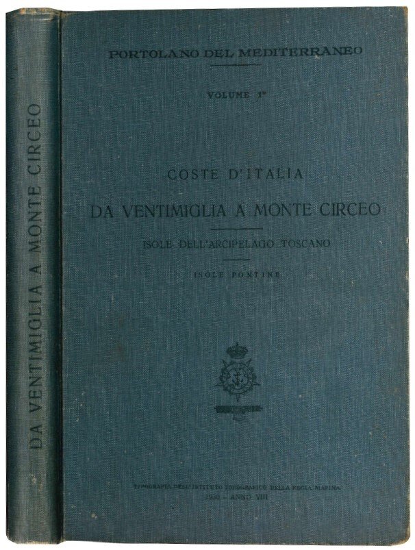 Mm. 234x155. Pp. XXIV, 328, [4], [35] cc. di tavv. C. lievemente ed uniformemente brunita, ultima cc. restaurata (nel testo presenti aggiornamenti, 'talloncini', fino al 1933). Firma di possesso all'occhiello ed in antiporta. Rilegato in tela editoriale. Lievi mancanze alle punte, rilegatura parzialmente staccata dal corpo del testo. Il volume appartiene alla collezione "Portolano del Mediterraneo. Istituto idrografico della marina".