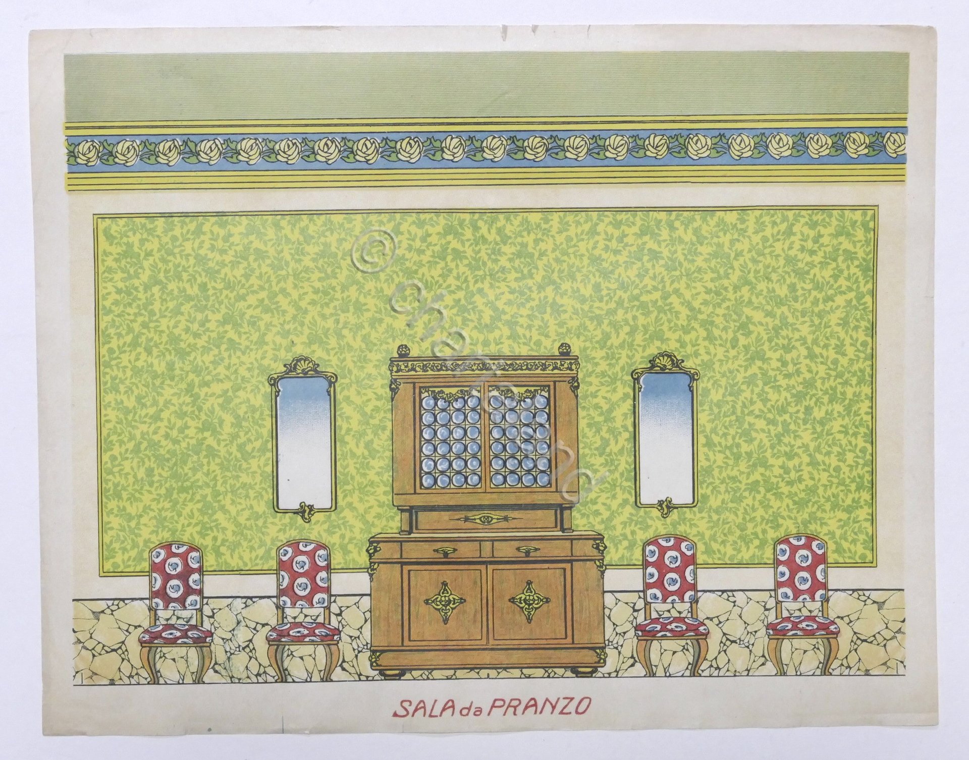 Costruzioni carta - Quinte Teatrino - Sala da pranzo - anni '40 Dimensioni: 26 x 33 cm ca. Buone condizioni. Piccoli strappi ai bordi.