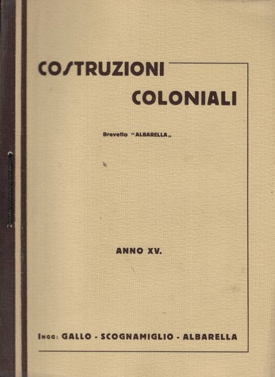Costruzioni coloniali Brevetto Albarella (Priv. Ind. N° 344521)