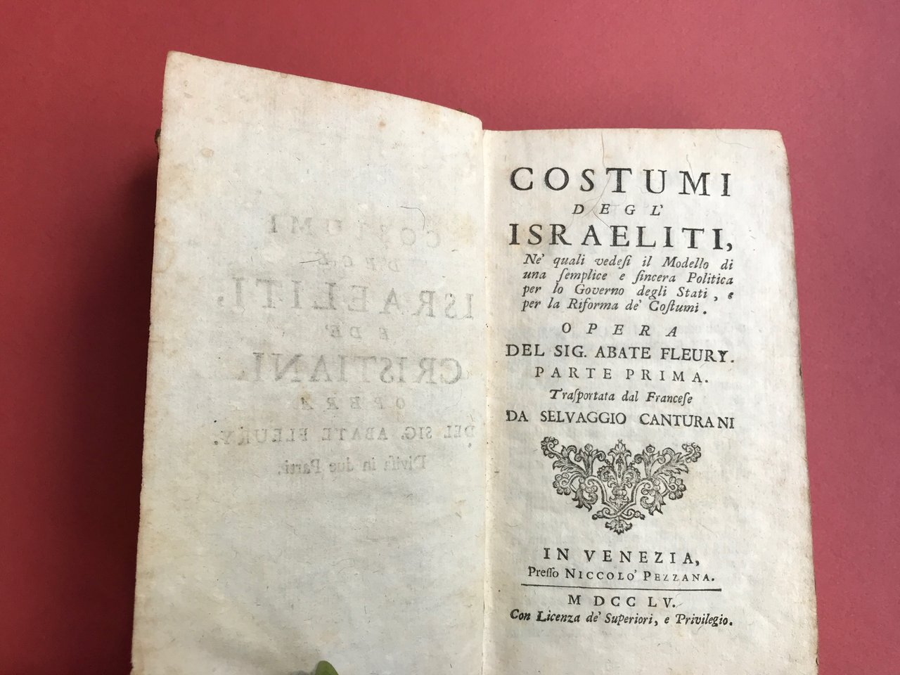 Costumi degl'israeliti ne' quali vedesi il modello di una semplice e sincera politica per lo governo degli Stati e per la riforma de' costumi. Costumi de cristiani.Tradotta dal francese da CANTURANI